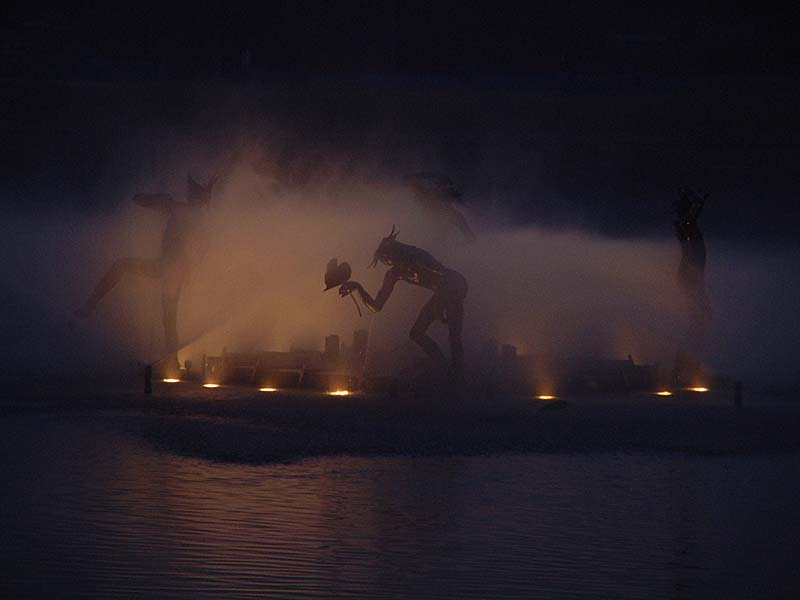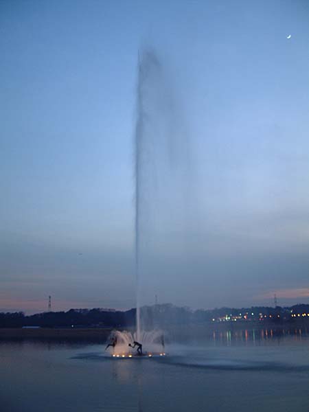月と噴水 ピンぼけだ(>.<)y-~~~